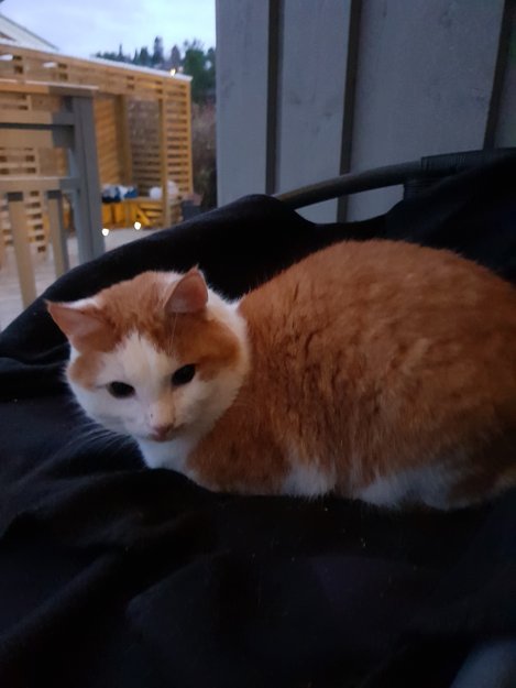 Denne hannkatten har vært periodevis rundt huset vårt siden april 2018. Har etterlyst eier tidligere uten hell.