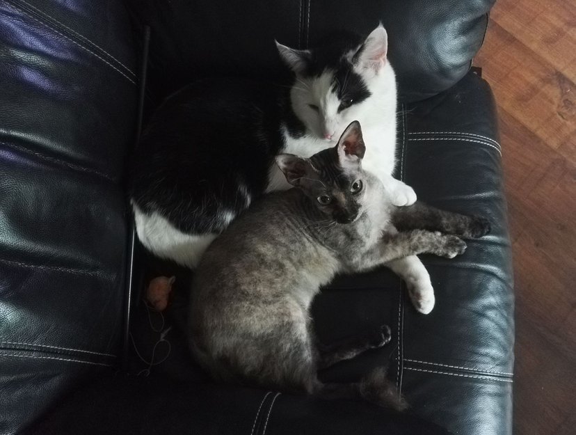 Terje har vært veldig deprimert og forandret seg helt siden vi flyttet fra gården han vokste opp på for ca 3 år siden. Han trivdes veldig godt der. Lille julaften skulle han "hjem til jul", og det gjorde han, men da jeg slapp han ut i stallen løp han avgårde og forsvant. Har ikke sett han siden. Fordi jeg har mistet telefonen som inneholdt alle bildene av Terje har jeg bare dette ene, som ikke er helt idèelt. Se bort i fra raringen som ligger foran Terje. Terje er den svarte og hvite. Terje er microchippet.