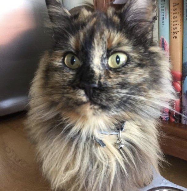 Brun, beige, sort hunnkatt var savnet i Sandefjord