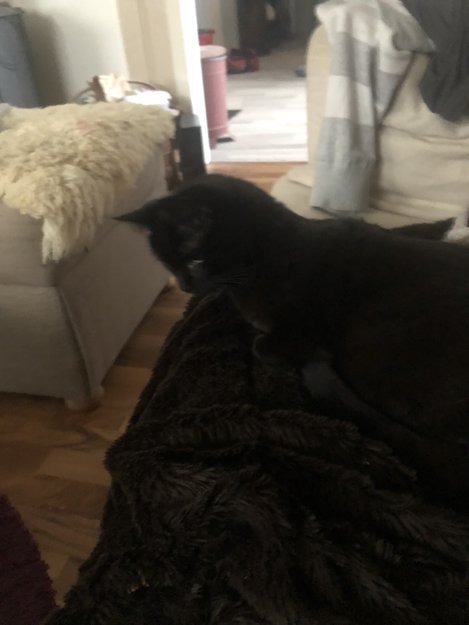 Det er en ung katt, ca 6-9mnd. Helt sort
