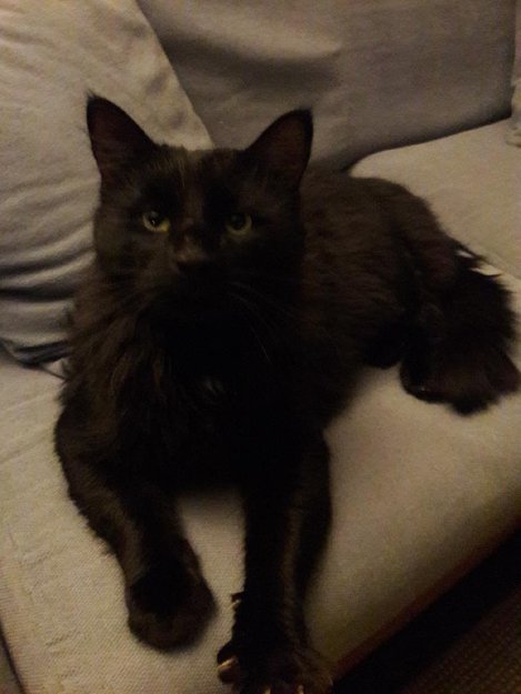 Katten er kastrert og ID-merket med chip 578097809288678. Halvlang pels.