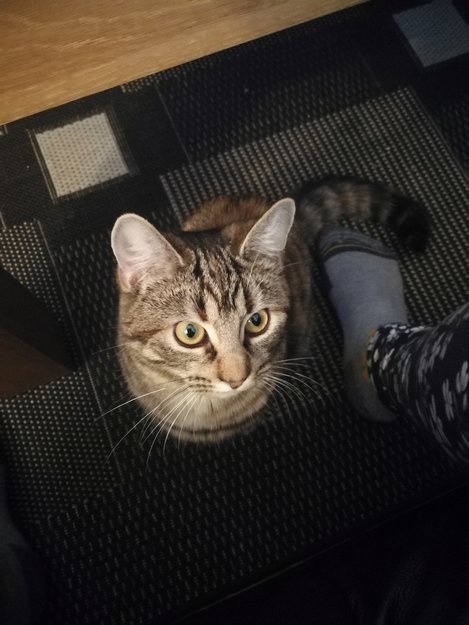 Mia lå hjemme på trappa når vi kom hjem etter en leterunde💕