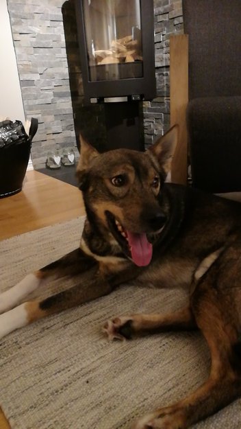 Trio er ny hjemme hos oss og er usikker i nye omgivelser. Greide å komme seg løs på gåtur i dag.