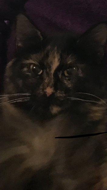 Katten vår på snart 9 mnd er dypt savnet. Hun er over gjennomsnittet snill og god - hun ble født på en besøksgård og har blitt «knadd» med siden hun ble født. Så hun finner seg i alt for mye, legger seg ofte ned istedenfor å løpe avgårde. Skilpadde-mønster med 3 beige labber og en baklabb som er helt svart.