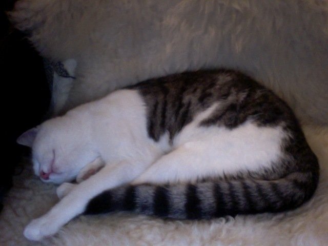 Kjempesøt guttepus med "lemur" hale. Veldig kontaktsøkende, snill, tam, rolig og kosete. Tilpasset seg fort det midlertidige hjemmet.