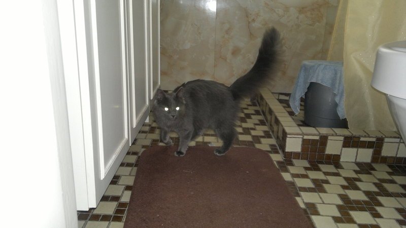 Liten, slank, meget lett å løfte. Sølvgrå med lang pels. Kjælen og tillitsfull. Små kulerunde øyne.