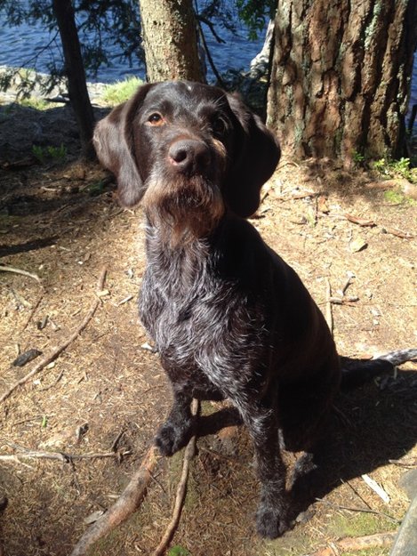 Grunnet skade er halen til Ulla kupert. Hun er litt tynn i pelsen.