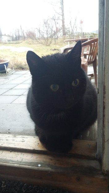 Katten oppsøker huset vårt, den mjauer høyt og er svært sulten. Mjauet høyt i natt og har kommet tilbake i hele dag.