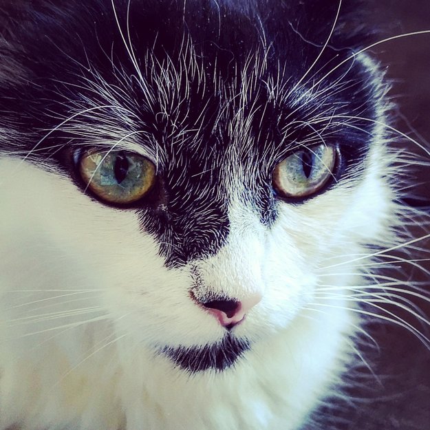 - Katt, Langhåret sort og hvit hunkatt