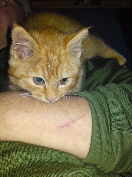 Denne kattungen dukket opp på en gård for ca 3 uker siden. Den var veldig redd. Har bodd ute og fått mat. I går lykkes det for folket på gården å få tak i katten. Så snart den kom i hus viste den seg å være veldig kosete og kontaktsøkende. Denne katten er garantert født inne hos noen. Hvordan den har havnet på denne gården er et mysterium, naboer er kontaktet og ingen kjenner til den. En så liten katt kan ikke ha gått veldig langt, så antagelig er den dumpet. Men vi håper jo at det finnes en forklaring og at noen savner denne nydelige kattungen.