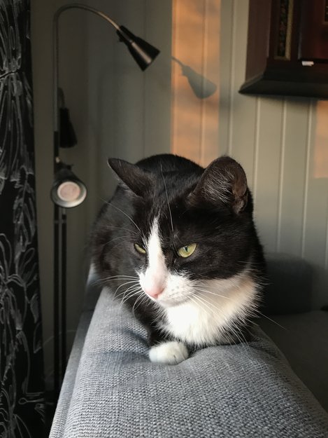 Hun lyder navnet otilie men kan være litt redd fremmede. Hvit på potene og svart på beina. Hvit på magen.