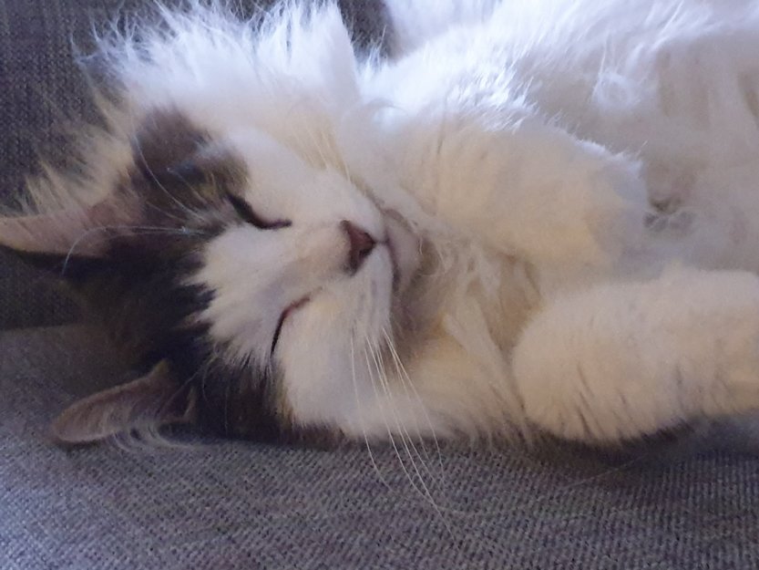Etter 5 dager dukket han opp sammen med vår andre katt som fant han. Etter mye jobb fikk vi han inn...tydelig sulten og sliten etter et langt eventyr