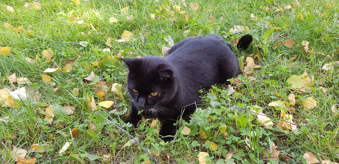 Han er 7 år i juli, svart kort pels med hvitt på brystet. Gule øyne! Han er ikke spesielt sky mennesker og glad i kos og klapp, vi har ei liten hund og han tåler henne helt fint men er ganske redd store hunder og spesielt om de jager, bjeffer og generelt uroer han/er truende! Han er en så snill og god pus og som det forhåpentligvis skal gå an å få tak i om han ikke er for redd og usikker.