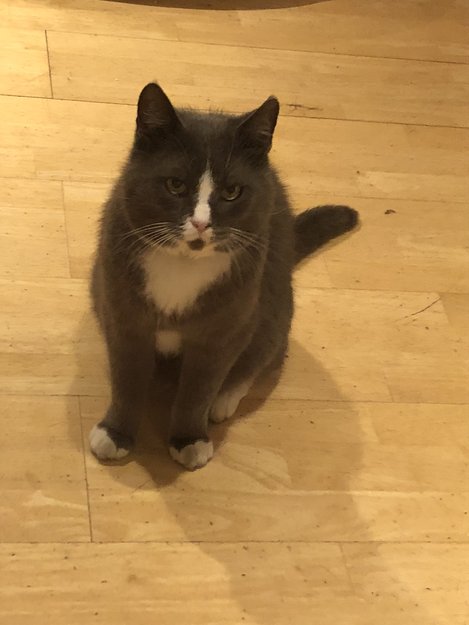 Grå og litt hvit hannkatt var savnet i Sandefjord