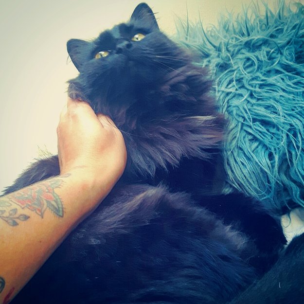 Sanna er ute på luftetur, og har vært borte i to døgn. Sanna er litt sky, og men kan bli trygg ved mating. Hun var borte i et døgn for en uke siden, og da kastet hun opp mat når hun kom hjem, så det var tydelig at hun får/forsyner seg av mat et sted. Da fikk hun på seg et halsbånd, med tlfnummer, og det så ut som matingen stoppet. Halsbåndet kan lett falle. Nå har det vært dårlig vær i noen dager og da vet jeg at hun liker å være inne. Derfor litt bekymret.
