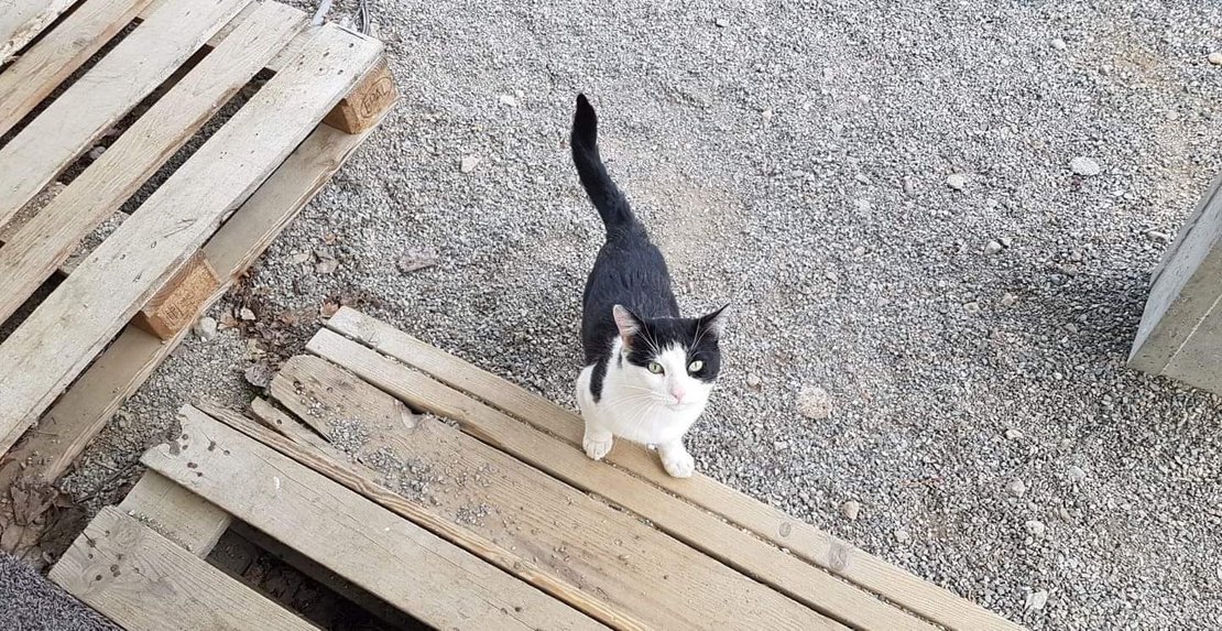 Mjauer sårt rundt flere hus i vid omkrets her. Fra Sjåstad til Trolldalen i hvertfall. Virker sulten, er raskt fortrolig, gjør seg søt/pusete og mjauer foran dørene. Når jeg spør naboer er det ingen som veit om noen eier.
