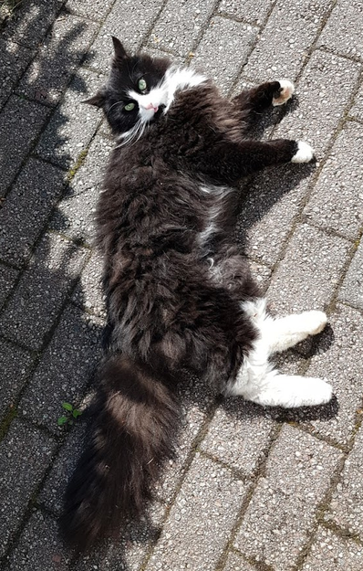 Har funnet en katt som har oppholdt seg i området rundt Adolph Bergs vei siden august 2018, de siste månedene har den vært her oftere. Litt skeptisk, men veldig kosete når du først får komme bort til den. Uten halsbånd og med matt pels og tykke floker, så er usikker på om pusen har en eier eller ikke.