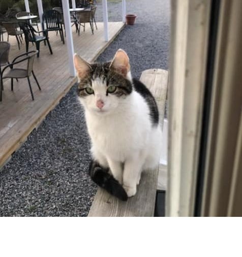 Grå/sort-tigret med mye hvitt. Ukastrert og umerket. Tillittsfull jentepus, antagelig ikke gammel. Hentet og ivaretatt av FOD (både kattemor og kattunge).