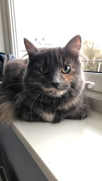 Askepott {10 mnd} var ute på terrassen kvelden 16 mai når hun plutselig ble borte. Siden har vi ikke sett henne. Hun er ikke vant med å være ute. Hun er en forsiktig kattunge og sky. Langhåret grå med beige flekker i pelsen.