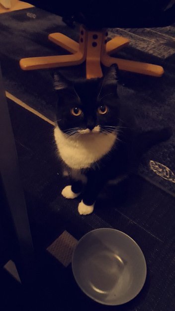 Ho er sky og redd av seg, ikkje so glad i andre menneskjer enn meg sjølv, og ho har eit kutt i toppen av venstre øyre, Ho e svart oppå ryggen, halen og hode, men hvit for munn, hals, mage og poter