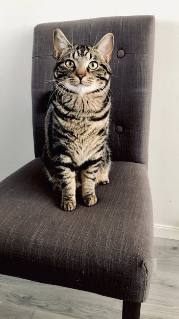 Sima er kastrert, og har en lignende bokstav som «M» i pannen.