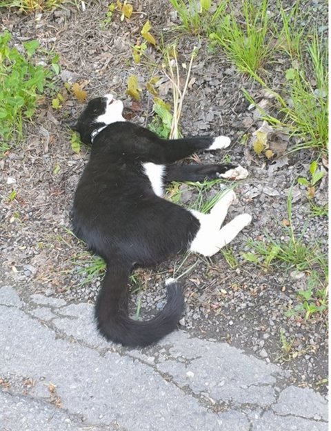 Så en katt ble påkjørt av bilen som kjørte foran oss 😢 Jeg har video av hendelsen.