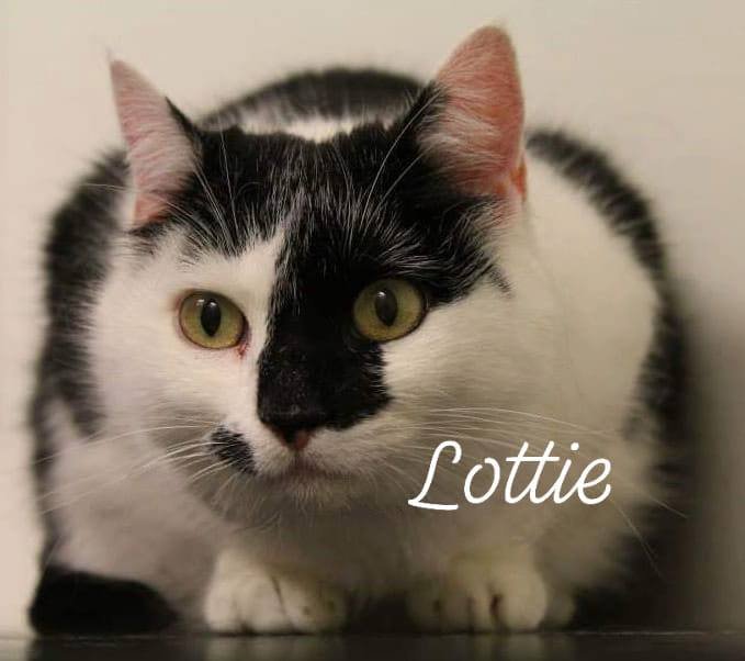 Lottie er svart og hvit, veldig spesielt markert i ansiktet.