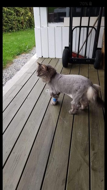 Hun er en norsk skogskatt som har fått seg en løveklipp. Veldig kosete og lyder navnet sitt. Hun har også en kronisk øyesykdom som gjør at hun kniper igjen øyet når hun ikke får dråper.