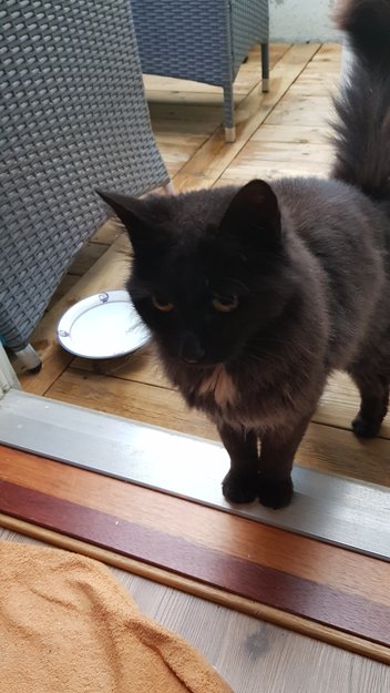 Jeg har sett denne katten noen ganger her nå og den hvirker veldig tam og kosete, ikke redd i det hele tatt. Men den er tynn og matt i pelsen. Vil bare finne eier for å forsikre meg at denne hører til en plass.
