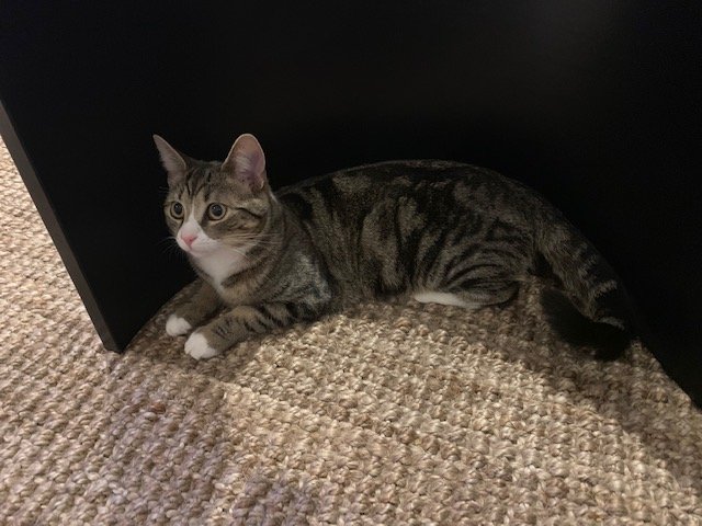Vi printet ut plakater som ble lagd her inne på dyrebar.no og hang en av dem opp på nærbutikken. Etter et par timer ringte det en hyggelig dame som hadde observert en lignende katt utenfor en skole like i nærheten av der vi bor. Vi tok turen til skolen og det viste seg at katten var Poppy:-) Hun var veldig redd når vi fant henne men roet seg ganske fort når vi kom hjem. Mistenker at ett eller annet har skremt henne slik at hun har valgt å holde seg vekke/ute disse dagene.