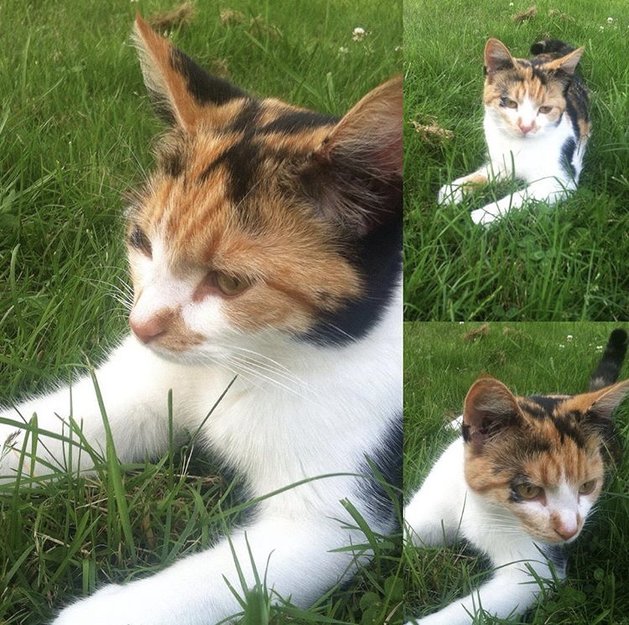 Hvit, svart, oransje hunnkatt var savnet i Fet