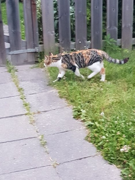 Katten oppholder seg i Kurlandstien. Virker sulten og har angrepet duer.