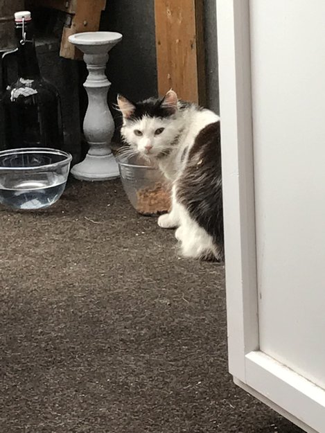 Kommer til Oss2-3 ganger daglig å spiser maten til pusen vår , har en innebygd veranda med en liten åpen katteluka hvor vi setter ut mat og vann til pusen vår , så han har om natten hvis han er ute, eller hvis vi et ute noen ærend på dagen. Litt redd, men prater fælt hvis vi roper på den. Katten vår har godtatt at den spiser , men når den er ferdig må den gå, klar beskjed fra pus 😊