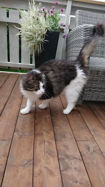 Har ikke vært hjemme på 6 dager, bruker ikke å dra langt hjemmefra. Har hatt besøk av hund, noe katten liker dårlig.