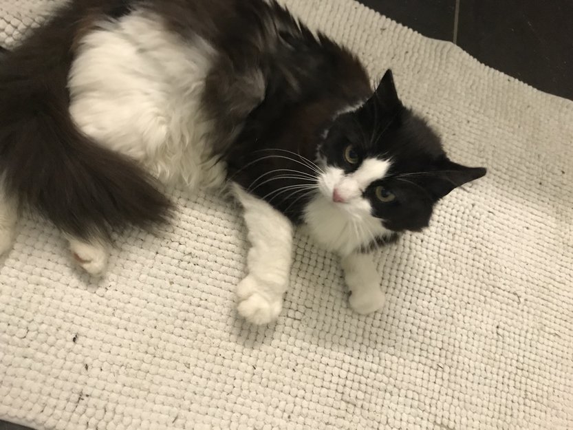 Katten ble observert første gangen i området for 2 år siden. Den så da «nyklipt» ut. Nå har den store floker i pelsen og bærer preg av å ikke bli stelt skikkelig.