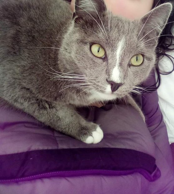 Grå og litt hvitt hannkatt savnet i Tromsø