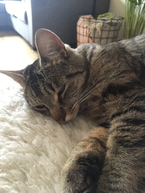 Jinx kom trippende inn verandadøra etter ti dager, i fin form, men temmelig sulten :-)