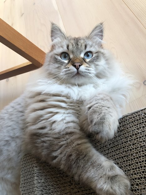 Hun svarer på navnet sitt Ulla og er veldig vennlig mot alle, til og med ukjente. Hun er hovedsakelig hvit med litt grå partier, på halen og i ansiktet. Har fått løveklipp for en stund siden så litt kortere pels noen steder. Lyseblå øyne og er lett gjenkjennelig. Ganske forsiktig katt