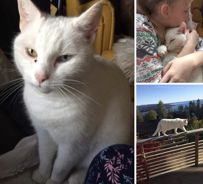 Katten bare ble borte. Han er vant til aa ta turer Men vanligvis kommer tilbake til aaspise hjemme. Naa ble han borte for over to uker.