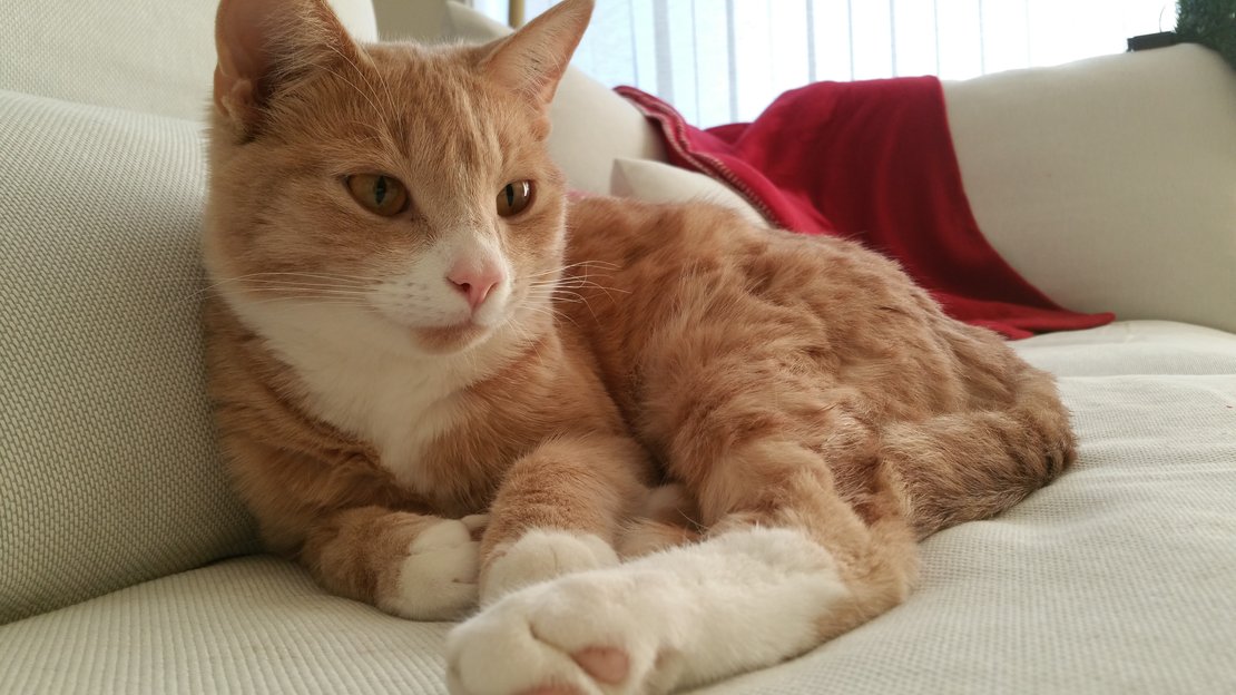 Har kattedør, så han er alltid å finne inne om morgningen, med mindre han kommer stormende inn ved påfyll av mat.