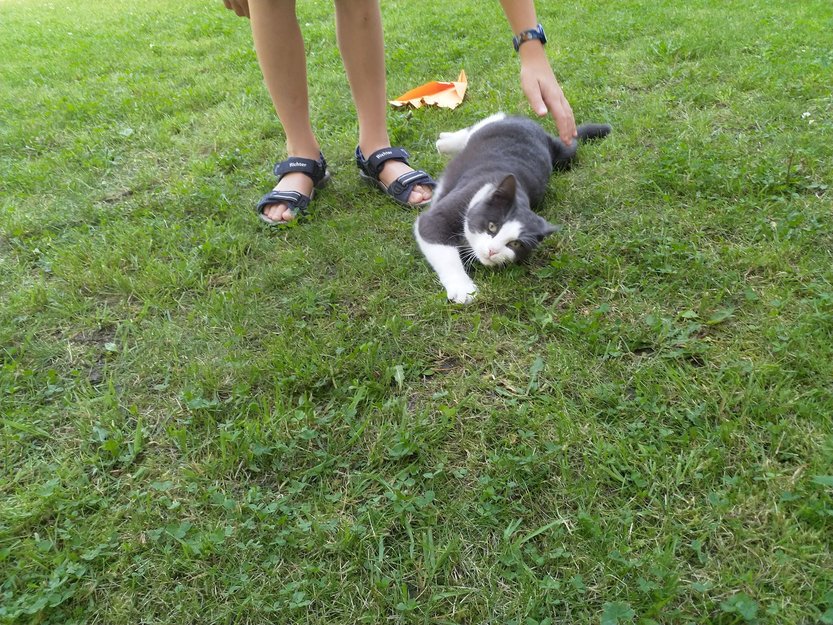 En venninne har fortalt om en ung katt som sitter i deres bakgård og virker ensom, forlatt og sulten. Vi har ikke fanget den.