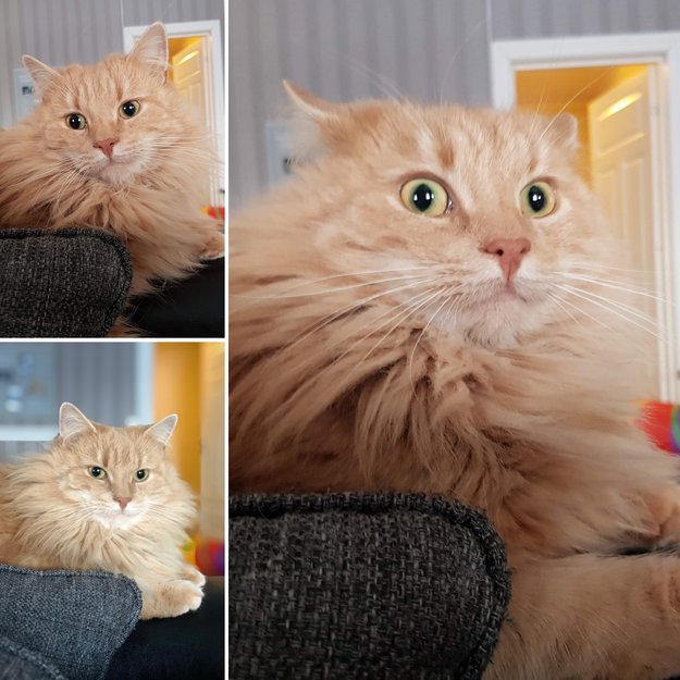 Kremfarget med rødskjær i pelsen, han er semilanghåret men noe tynn i pelsen på grunn av varmen og røyteperiode.