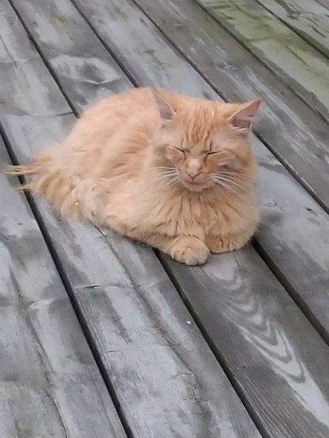 Elsker kos, går opp på fanget med en gang. Ganske ung katt. Stor hale.