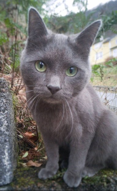Long legs, long tail darker grey color, short hair. On the light he have little brown on the neck, around tail have around 4 silver hair. He is wery beautifull atletick and society cat..