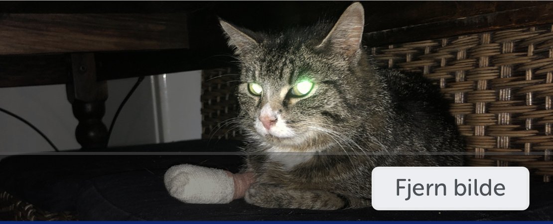 Hvit på snuten og under haka. Hadde ett lite sår på høyre pote, men usikkert hvordan det er nå siden hun har vært borte så lenge! :/