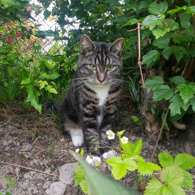 Vi har ikke sett katten siden vi var borte helgen 19.-21. juli. Han er vant med å være hjemme alene i et par dager. Han har egen kattedør og oppholder seg for det meste ute om sommeren. Av og til ser vi han knapt på mange dager, men nå vet vi at han ikke har vært hjemom, da maten hans ikke har blitt rørt.