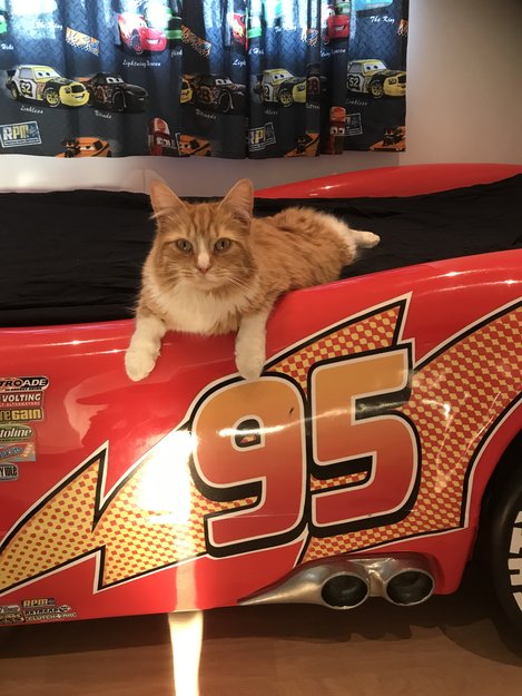 Hvit i brystet og under magen, samt på beina. Litt hvitt på nesa og haka