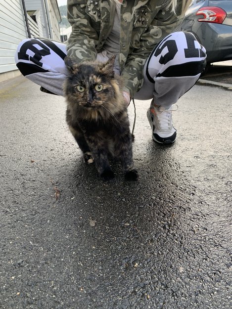 Svart, brun og hvit hunnkatt ble funnet i Drammen