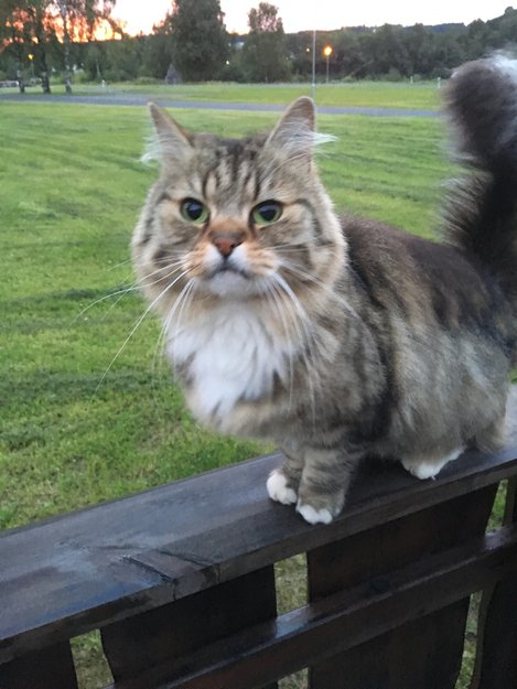 Huset vi bodde i brant ned til grunnen. Kattene våre var innekatter i sentrum, og jeg fant henne ikke etter flere runder i huset før brannvesenet nektet oss flere runder. Tror hun må ha kommet seg ut. Hun har erfaring som utekatt i Hegra, så hun kan ha lagt i veg dit, og hun er en god jeger. Regner med at hun er svært redd og sky og ikke nødvendigvis vil komme til noen særlig lett. Håper inderlig at noen ser henne og ringer meg. Hun er merket med microchip i mitt navn, har ikke ID-nummeret for alle papirer gikk med i brannen.