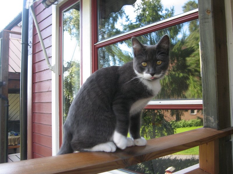 Kraftig pels og ganske stor for alderen. Veldig tillitsfull og kosete katt.